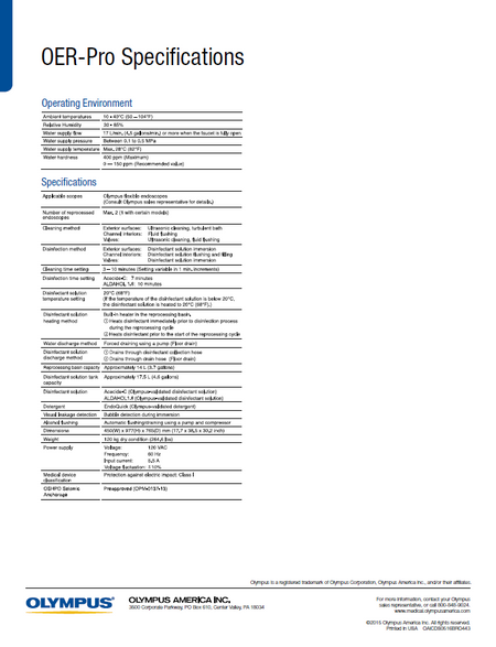 - The OER-Pro is specifically designed by an endoscope manufacturer, Olympus, with 35 years of experience in flexible endoscope reprocessor manufacturing.